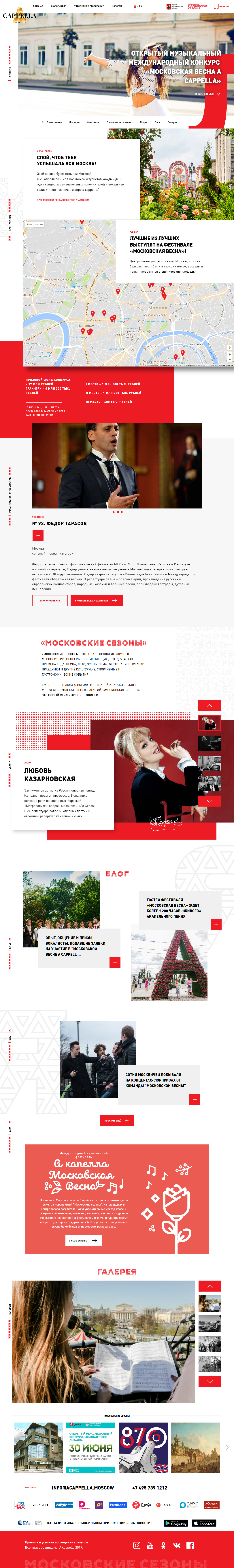 Development of the brand identity, dynamic logo and a fully adaptive website for an International Annual Acappella festival in Moscow. Complex NODE JS backend allows festival managers to easily adapt the site for a new upcoming festival year without collaborating with development teams.